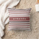 Um designer de travesseiro decorativo quadrado liso e branco, cor-de-rosa. Dê um toque personalizado a este acessório do quarto chic adicionando seu nome. Esta trendy ombre stripes padrão design está certamente aquecendo qualquer sala. Parte da Coleção de Cor de inverno do Decor do Quarto de Marsala Stripes.