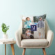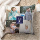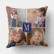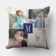 Faça sua própria colagem de fotos e monograma de Travesseiro decorativo personalizado. Este travesseiro moderno mostra uma colagem de quatro fotos da família e seu monograma na frente e quatro fotos diferentes nas costas. No centro há um quadro azul marinho com o seu monograma. Basta mudar imagens e monogramas para criar o seu próprio! Fotografia © Storytree Studios, Stanford, CA