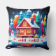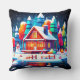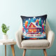 O brilho sutil das pequenas luzes à volta da janela acentua a confortável satisfação da casa de madeira, enquanto o boneco de neve se posiciona alegremente no portão, exalando calor no ar, simbolizando a alegria e felicidade da estação.