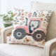 Almofada Trator Rosa com Padrão Floral, Estilo Farmhouse