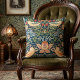 Desenho artístico chamado Strawberry Thief de William Morris com detalhes coloridos.