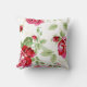Travesseira de lançamento com impressão de rosa vermelha em fundo branco. Esta linda coleção de estampas florais clássicas será perfeita para uma celebração de jardim interno ou externo para um casamento, chá de noiva, chá de bebê ou uma celebração country. Toda a coleção é personalizável. Aproveite sua celebração, saúde!
