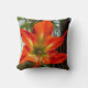 Este Travesseiro apresenta a beleza intensa de uma flor, uma Amaryllis desabrochando no jardim. A fotografia original de ZoeSPEAK é um closeup, e os detalhes da flor, as formas e mudanças de cor do centro para fora são incríveis. De tons suaves de verde misturando-se com o amarelo, a flor termina com cinco pétalas estendidas em laranjas profundas e ricas contra um fundo de folhas verdes e madeira marrom suave.