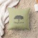 Um gráfico de um carvalho senta-se no centro de ambos os lados do travesseiro. Personalize com um sobrenome na parte dianteira e segundo sobrenome no verso. Personalize cores do fundo ao fósforo, ou, como na amostra, para complementar-se e a decoração da sua casa.