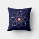 Travesseiro decorativo azul escuro com um símbolo atômico no vermelho, no azul e nas cinzas.