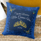 Personalize o nome e a mensagem neste azul real, quadro decorativo, travesseiro decorativo de Quinceanera. Borboletas azuis e douradas Quinceanera mantém o saquê. Versátil para cores temáticas azuis reais ou azuis marinho. As borboletas e a tiara podem ser facilmente redimensionadas e reposicionadas no travesseiro decorativo.