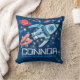 Travesseiro do nome do quarto ou da sala de jogos do espaço dos miúdos para meninos. Personalize com seu nome até 6 letras. Este exemplo lê: "Connor" aperfeiçoa para o filho quem é um explorador de espaço ou uma estrela de brotamento do astro. Gráfico projetado por Sarah Trett.