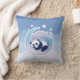 Travesseiro bonito com uma panda que dorme na lua, nas estrelas brancas e no fundo nebuloso azul.