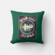 Um travesseiro com a frase "Break from the Grind" em letras negrito, acompanhado de um gráfico de palmeiras, folhas exuberantes e dois surfistas carregandos suas pranchas, evocando um senso de paraíso tropical e relaxamento.
