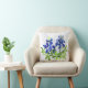 Travesseiro decorativo com a minha cor d'água Bluebonnets pintando em tons de azul, roxo e verde sobre fundo branco.