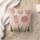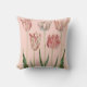 Este travesseiro caracteriza um desenho botânico do vintage das tulipas, em um fundo rosa pálido.