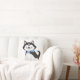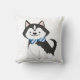 Você tem amor por cachorros? Este travesseiro precisa estar no seu espaço. Um lindo cachorro preto e branco com olhos azuis te fará dizer: "uau". Ele também parece mais apto em sua gravata de arco listrada, azul e branca. A parte de trás é feita em cor azul sólida.