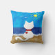 As características deste design brancas bonitos do travesseiro do gato um gato branco que sentam-se em um Sandy Beach que olha as ondas de oceano e os pássaros que voam no verão expor ao sol!! Do excelente uma ideia do presente a qualquer momento para seu amante favorito do gato!!