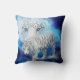 Dois tigres brancos, um andando na água azul, o outro dentro de uma lua grande, decoram este travesseiro, fazendo lhe um acento original e bonito do decorador para sua decoração. Do espírito da coleção selvagem da coleção da arte pela canção de natal Cavalaris, este design está igualmente disponível como um poster das belas artes ou impressão assim como em outros artigos.