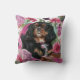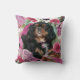 travesseiro de arte de cão preto e cavaleiro arrogante com fundo floral, cor-de-rosa e verde.