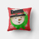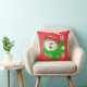 Travesseiro de Natal clássico, tão bonito e colorido, apresenta um fundo vermelho com pequenas bolinhas brancas com um círculo verde com pontos brancos e cada lado tem um boneco de neve sorridente com um chapéu, cachecol, nariz de cenoura e flocos de neve!