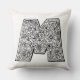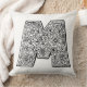 Mono travesseiro de desenho desenhado a preto e branco, com um monograma de cor M. Ideal para colorir ou apenas guardar como um esboço mono-design. © Original desenho de arte e design por Sarah Trett. www.sarahtrett.com para www.mylittleeden.com