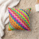 Almofada de travesseiro com padrão Zigzag em cores vibrantes, incluindo matizes laranja, amarela, vermelha, roxa, rosa, azul e verde. Pareceria excelente em uma propriedade moderna ou adicionaria um toque de cor vibrante e ousada a uma sala. Padrão de Sarah Trett.
