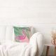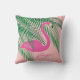 Estes divertimento e coxim tropical são decorados com um flamingo cor-de-rosa brilhante e folhas de palmeira em um fundo coral, fazendo a lhe o acessório feminino perfeito do verão para o quarto, a casa de campo, a pátio, a plataforma ou a área da piscina. Este travesseiro é fácil de personalizar com seu nome, iniciais ou outro dizer.