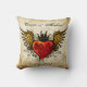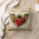 Travesseiro da lembrança do casamento do tatuagem do vintage. Um grande tatuagem do vintage inspirou o coração com asas e uma coroa que senta-se em enfeites extravagantes. Os nomes da noiva & dos noivos e a data do casamento decoram a parte dianteira. Uma grande lembrança para seu dia especial!