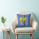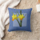 Daffodils em laranja e amarelo. Duas flores contra um fundo azul médio com um centro difuso para formar uma moldura, fazendo com que as flores pareçam tridimensionais.
