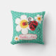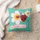 Travesseiro brilhante do verde, do vermelho, o amarelo e o branco do aqua das meninas do nome, caracterizando os joaninhas e as flores projetados exclusivamente perto por Sarah Trett. Personalize com seu nome, este exemplo lê Bella Ava. Seja um excelente adicional ao aqua do miúdo/quarto temático do vermelho ou da natureza a ajudar a personalizar seu espaço.