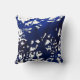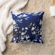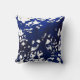 Travesseiro impresso com desenho abstrato em tons de azul sobre fundo branco, a partir da pintura de aquarela original.