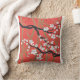 Este travesseiro oriental vermelho do estilo liven acima de sua sala com o design bonito da flor de cerejeira em um fundo de bambu dourado!