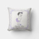 travesseiro de bebê roxo e cinza com uma linda menina vestindo um vestido roxo de calças roxas em uma renda roxa e cinza e fundo de arco. Essa lavanda e esse travesseiro de bebê cinza bonitos são facilmente personalizados com o texto de sua escolha. Você também pode excluir o texto e redimensionar e mover o bebê conforme necessário.