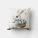 Adicione um toque de magia da primavera a um berçário ou sala de brinquedos com este encantador travesseiro. A frente apresenta uma ilustração em estilo pintado à mão de um coelho branco fofinho em uma camisola xadrez azul carregando uma cesta de ovos coloridos. O verso exibe um sentimento limpo de "Feliz Páscoa", tornando-o um acessório reversível perfeito para a decoração sazonal da casa.