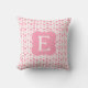 Um bonito travesseiro monograma com um padrão de bolinhas cor-de-rosa e o início de sua escolha em uma fonte elegante. Adicione um toque giro e giro a qualquer quarto com este travesseiro decorativo!