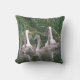 Este incrível travesseiro apresenta uma bela fotografia de um par de cisnes adultas e seus 4 ciganos nadando à distância ao longo de um rio tranquilo e tranquilo.