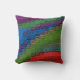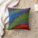 Este travesseiro deve iluminar qualquer decoração, com as cores do arco-íris de roxo, verde, azul, vermelho, turquesa e ouro. As cores atravessam a superfície em um padrão de abstrato. Ambos os lados têm a mesma imagem.