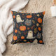 Este é um travesseiro de almofada com um fantasma fofo e um padrão de abóbora, perfeito para o Dia das Bruxas.
