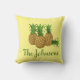 Travesseiro decorativo de temas tropicais com decoração caseira personalizada amarela, com três design de abacaxi personalizado para o fato.