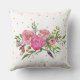 travesseiro decorativo decorador bonito branco, com fundo de bolinhas verde-claro. Trabalho de arte de aquarela maravilhosa, de um buquê cor-de-rosa, decora o meio do travesseiro.