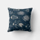 Um travesseiro decorativo quadrado bonito com um padrão rico de peixes nadando em água azul escura, esboçado em uma linhagem moderna. Um sotaque perfeito para casa com tema costeiro e casas de praia. *Todas as minhas designs são as minhas próprias ilustrações e arte originais, portanto sujeitas a proteção de direitos autorais. Meio M. _____________________________________________________________