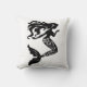 Travesseiro decorativo mostrado em preto e branco com uma impressão de sereia fofa. Personalize este travesseiro ou comprar como está.