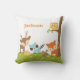 Travesseiro de tendências adorável para pequenos. Possui uma raposa, veado, guaxinim, coruja, ouriço e coelho. O travesseiro pode ser personalizado com o nome da criança.