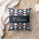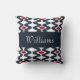 Um bonito travesseiro de padrão azul, vermelho e branco parecerá excelente no seu sofá. Personalize com seu nome ou qualquer coisa que você desejar. Isso daria um presente para o aquecimento da casa de excelente.