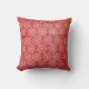 Um belo travesseiro decorativo de Natal apresenta um veado marrom com um ornamento pendurado nas suas galhadas, uma árvore de Natal marrom e um fundo de faixas diagonais vermelhas e cor-de-rosa na frente, flocos de neve cor-de-rosa a vermelho no verso.