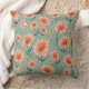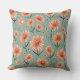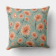 Este travesseiro tem um padrão de flores laranja sobre um fundo verde. É calmante, mas é uma flor, então é adequada para decorar a sala.