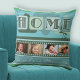 Um travesseiro verde moderno com um tema "Casa é..." com suas próprias fotos e texto e novas folhas verdes. Bonita para Dia de as mães ou para adicionar fotos do seu animal de estimação favorito...
