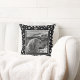 Travesseiro personalizado de fotos de animais domésticos. Personalize-o substituindo a imagem de amostra por uma imagem do seu animal de estimação ou animais de estimação. Padrão de impressão de pata branca e preta com fundo preto dominante e ilustrações de impressão de pata branca. Decoração de casa em negros para amantes de cães que gostam de arte de impressão.