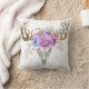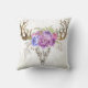 Lindo travesseiro com uma imagem em aquarela de um crânio de veado e galhadas adornadas com flores.