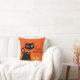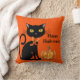 Travesseiro de Gato Halloween mostrado em laranja na frente e preto no verso. Personalize este item ou comprar como está.