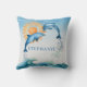 Travesseiro decorativo personalizado bonito para quem adora golfinhos. Atualize facilmente o nome, escolha o tamanho e o tecido desejados.