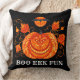 Um travesseiro decorativo e clássico do Dia das Bruxas para adicionar à decoração do Dia das Bruxas ano após ano. Um Jack-o-Lanterna, folhas de outono e Lua Batty estão esperando para ir ao seu sofá por diversão de Halloween! As ilustrações são de aquarelas pintadas à mão originais. As cores laranja, amarelo e preto são justas para as festividades do Dia das Bruxas. Adicione uma mensagem personalizada ou nenhuma.