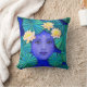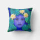Travesseiro de Krishna Lotus. A cara azul do Krishna refletiu em uma lagoa de lótus. Travesseiro da arte por Sue Halstenberg