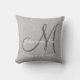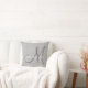 O travesseiro feito sob encomenda do casamento do monograma imprimiu no fundo de linho cinzento do falso.